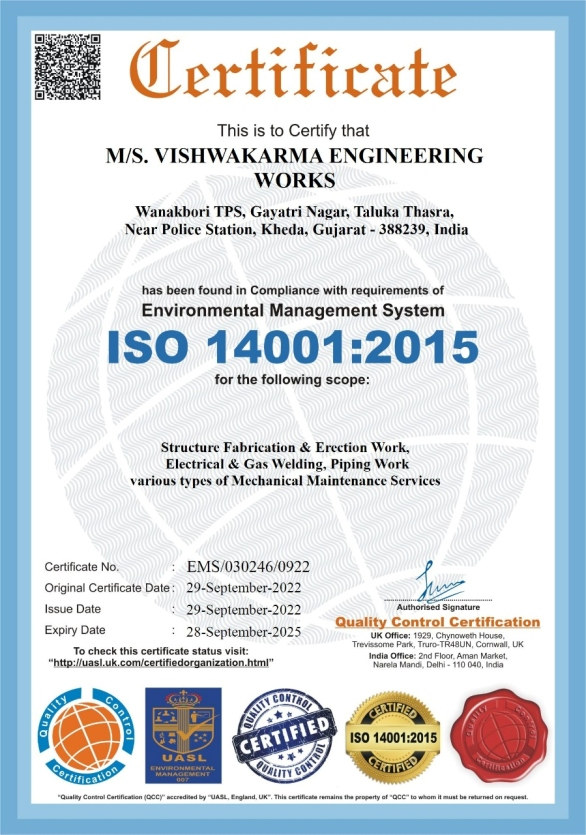 "Now Awarded Awards & Certificates For Quality, Maintenance Services And Environment Management System."